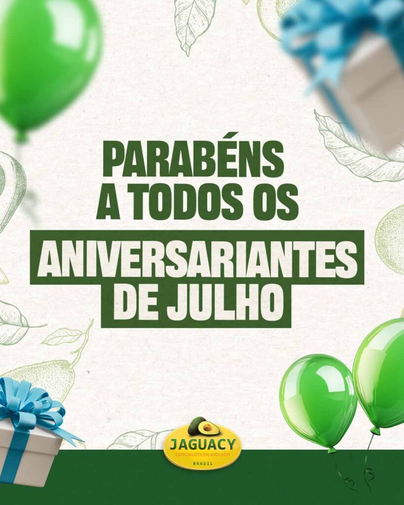 Julho passou e a Jaguacy parabeniza todos os colaboradores que comemoram seu aniversário neste mês especial! Que este novo ciclo seja repleto de saúde, sucesso e muitas conquistas. Agradecemos por todo o empenho e dedicação que fazem a diferença no nosso time! Feliz aniversário! 🎊🎁💚