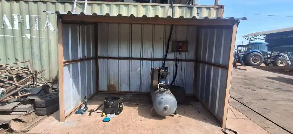 2) Reposicionado o compressor de ar e a máquina de lava a jato, atualmente instalados sobre o teto de um container, para o nível do solo, com o objetivo de facilitar as atividades de manutenção e adequar a instalação às normas de segurança.